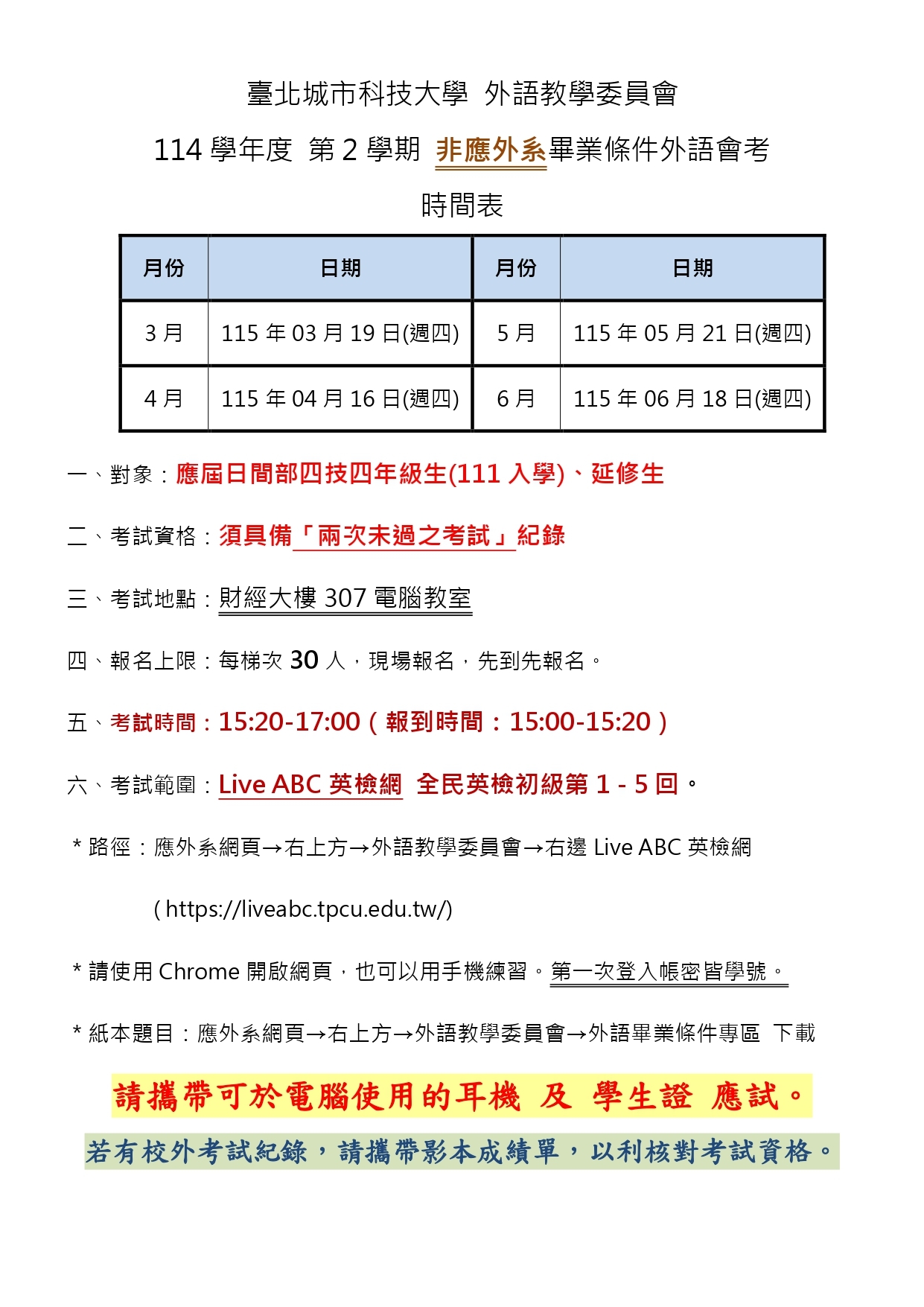 114-2 會考時間表